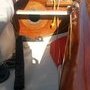 Coque mixte résine couleur orange et pont bois vernis.