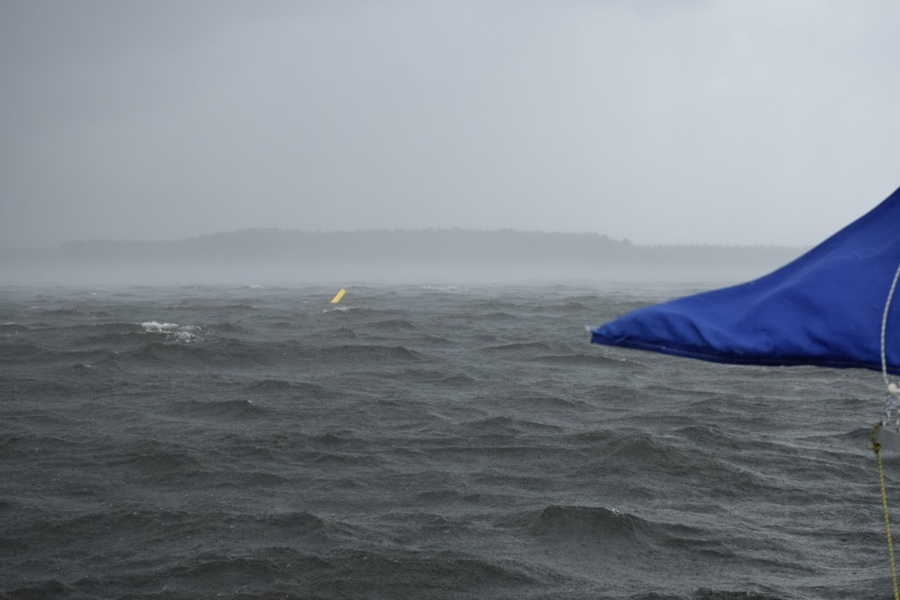 Cette 4 -ème manche s’effectuera dans des conditions extrêmes après le passage d’un grain et un anémomètre aux alentours de 25n voyant Tim et Didier aux 2 premières places.