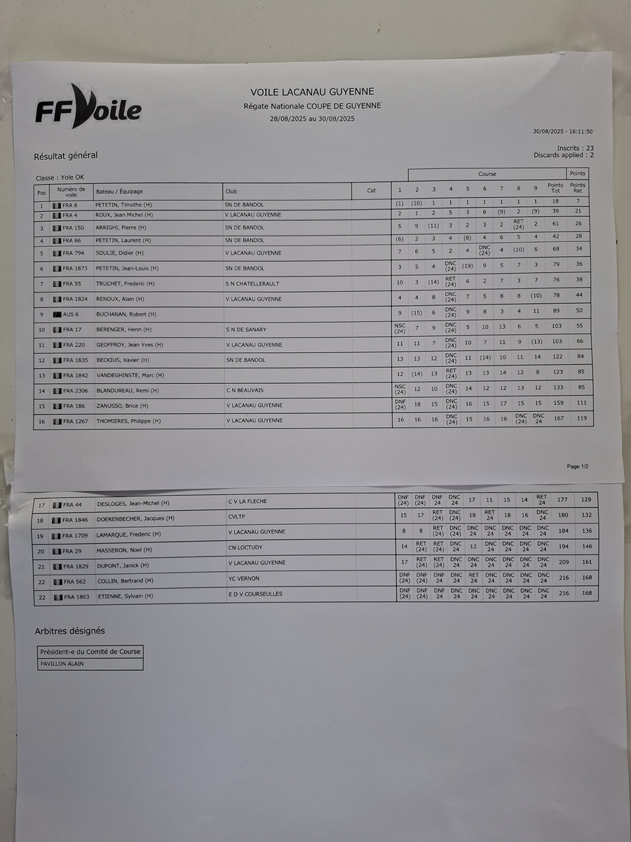 Pour ce qui est de la météo, de façon inhabituelle à cette époque, Éole s’est invité en force sur les 3 journées permettant 9 manches courues, même le samedi, n’est-ce pas Henri !